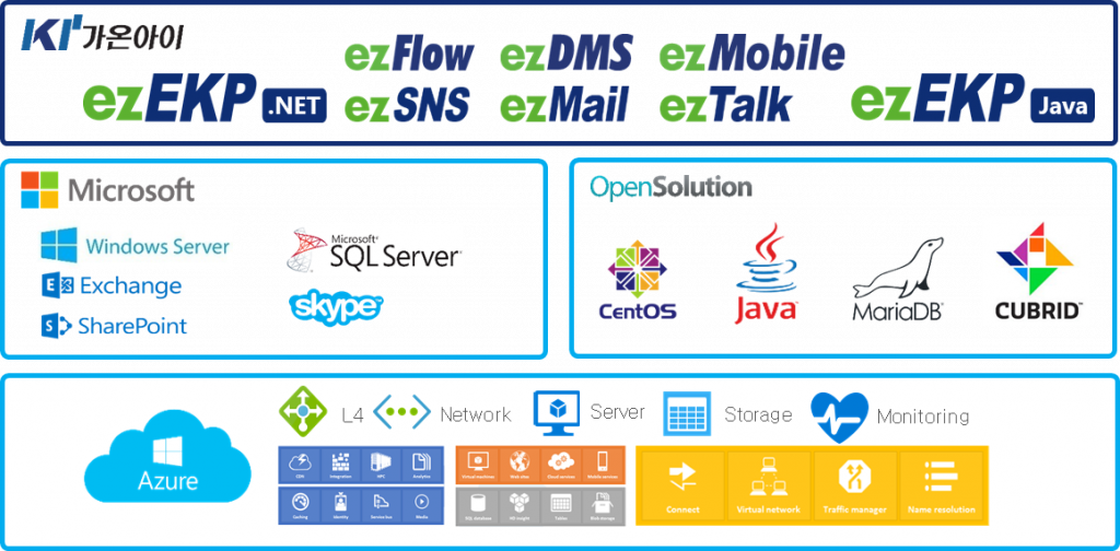 Azure 상에 ezEKP 제품은 .NET과 JAVA 버전의 구성으로 Global, Trusted, Hybrid 키워드를 가지고